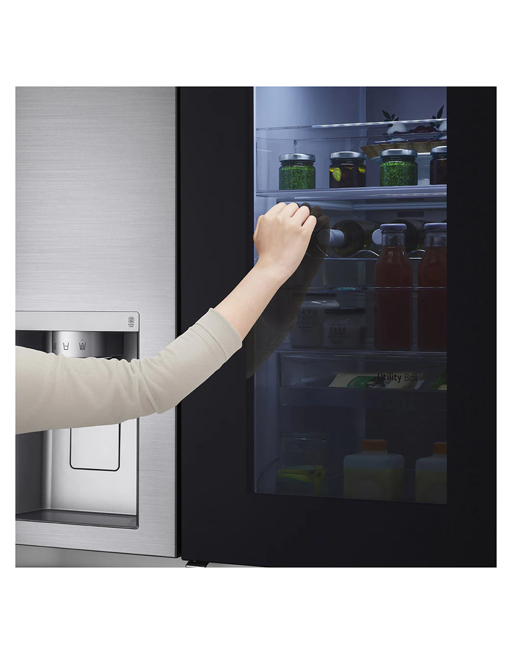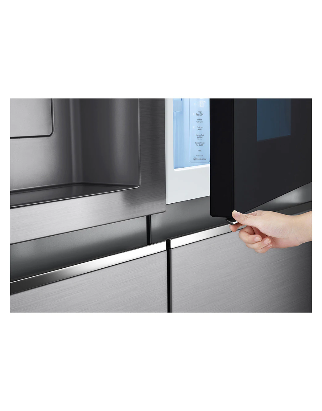 - InstaView™ Door‑in‑Door™: Double‑tap the tinted glass panel to peek inside without opening the door. This helps reduce cold-air loss and keeps your favorite items easily accessible.
