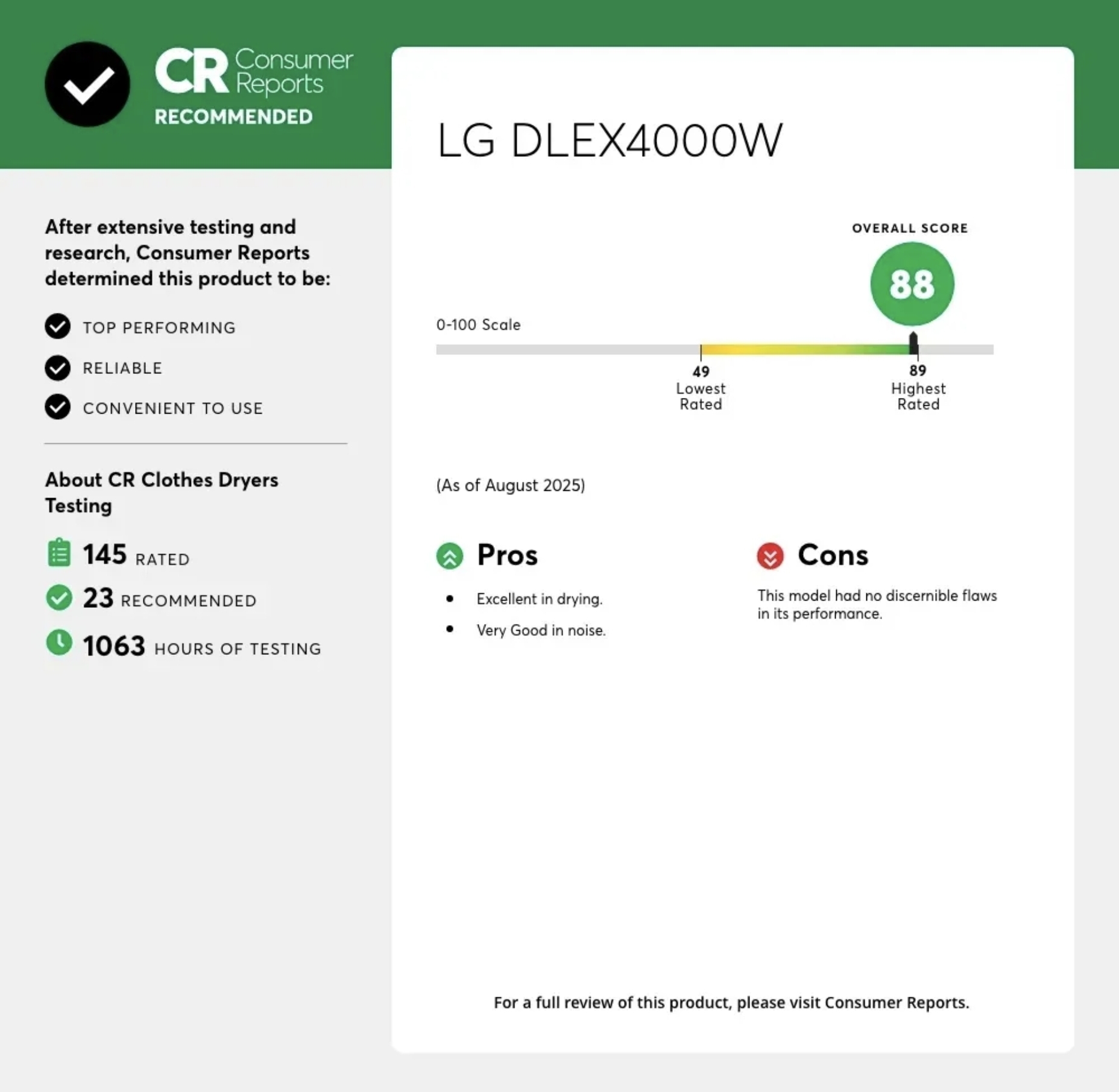 • Stacking/Compatibility: designed to pair visually and functionally with LG front-load washers (example matching washer model: WM4000 series). Pedestal and stacking kits available as accessories.