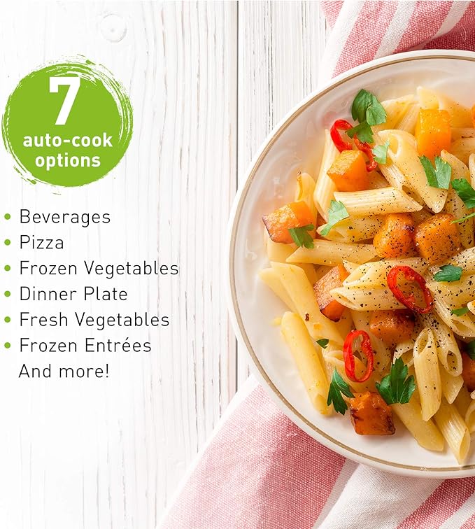 One-touch convenience for common dishes (e.g., frozen entrees, vegetables, pizza, beverages), providing consistent results without guesswork  .